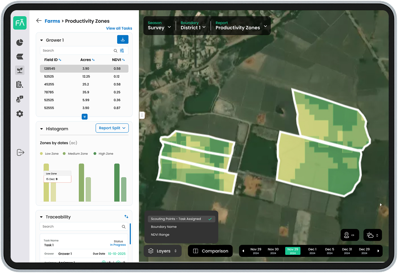 Integrate eSurvey data for grower wise monitoring of farming practices from seed-to-harvest