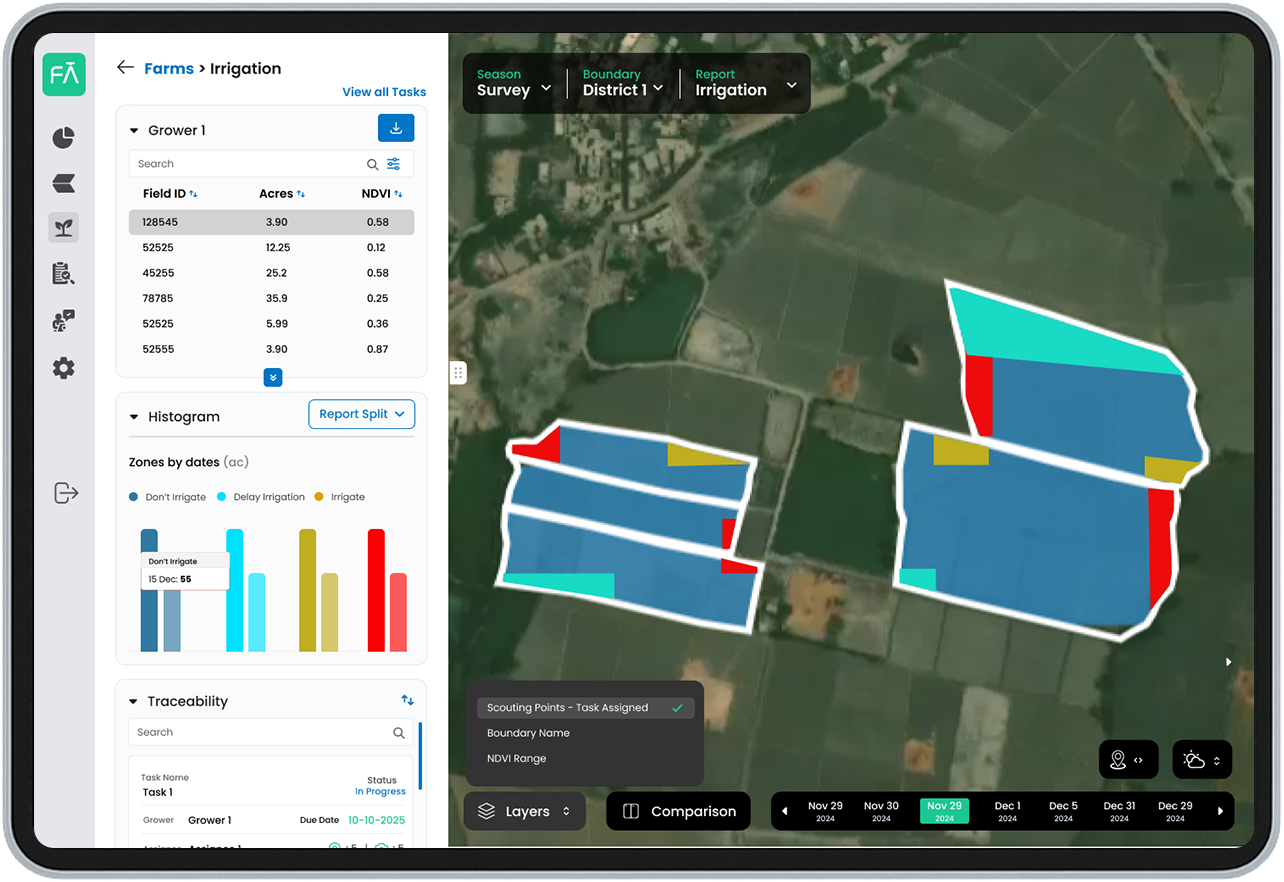 Enables precise irrigation, reduces water waste, and protects yield